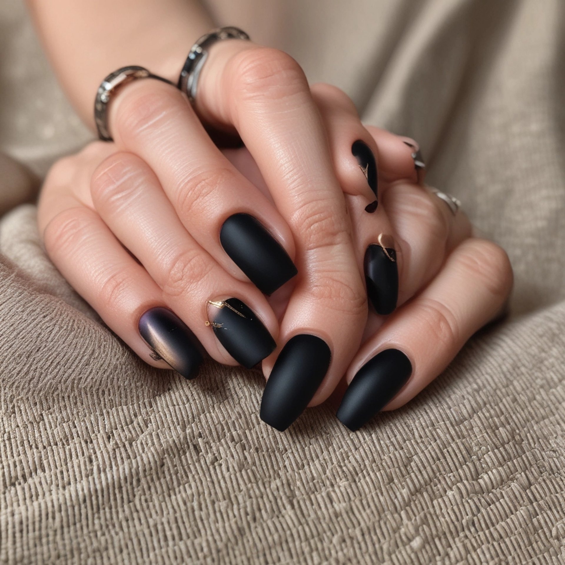 Matte Base: Apply two coats of matte black to four of your five nails.